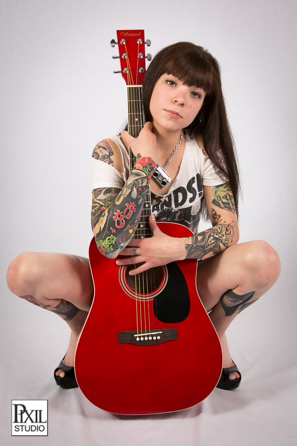Studio portraits and pin-ups of Asia with guitars and guns -photography